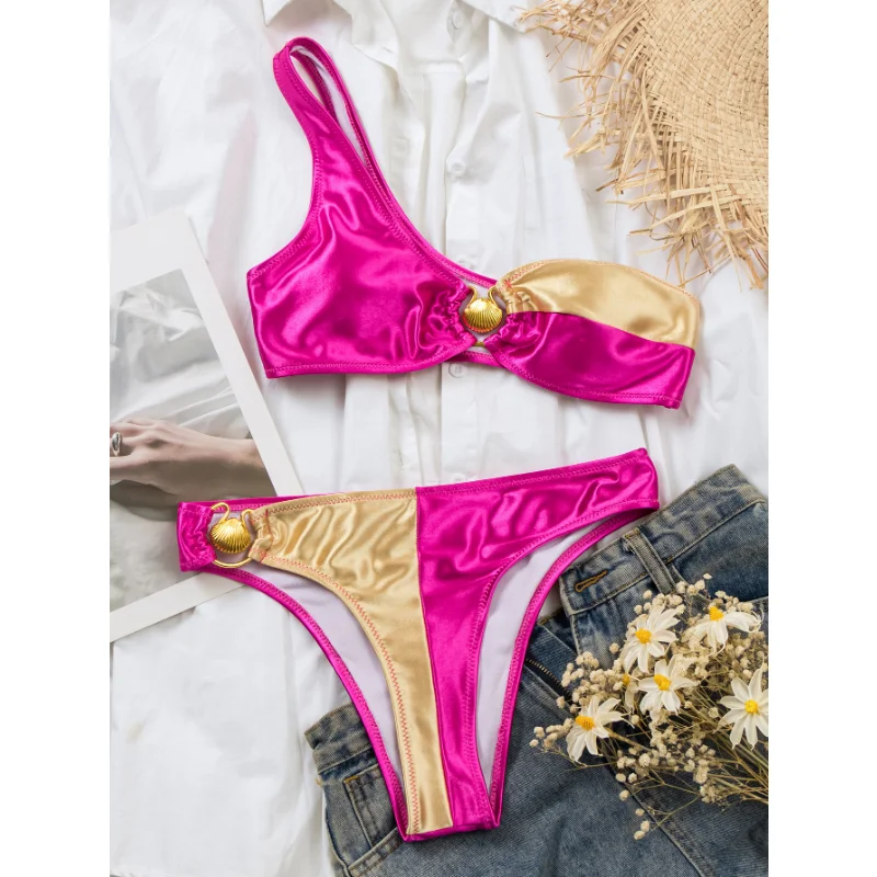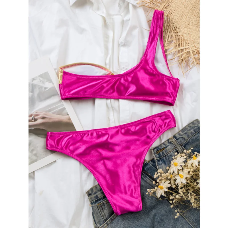 Custom Shinny Fabric Silver One Shoulder Sexy Bikini Set New Design Beachwear & Bikinis